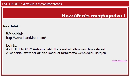 Jó példa erre az IE Antivirus 3.2.Április 26-án még a Nod számára teljesen ismeretlen volt.Semmilyen információval nem rendelkezett a programról.VirusTotal szerint sem veszélyes.Elküldve a víruslaborba elemzésre az aznapi harmadik adatbázis frissítéssel már riasztott rá a Nod.Későbbiekben az egész oldal tiltólistára került.Ebben az esetben,mivel nem vírusról van szó,hanem egy veszélyes,csaló programról a vírusirtót be kellett tanitani rá.