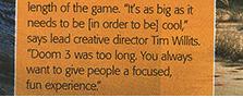 A játék hossza: Olyan hosszú, amilyenre szükség van annak érdekében, hogy fasza legyen. Mondta Tim Willits, kreatív vezető. "A doom3 túl hosszú volt. Minig is egy koncentrált, szórakoztató élményt akartunk nyújtani a játékosoknak." -
