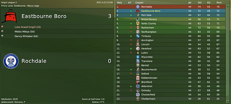 Grat, nagyon szép eredmény, hamar sikerült feljutni a Premier League-be. Én nemrég a Mansfield-el próbálkoztam, de a Blue Square Premierből sem sikerült továbbmennem.