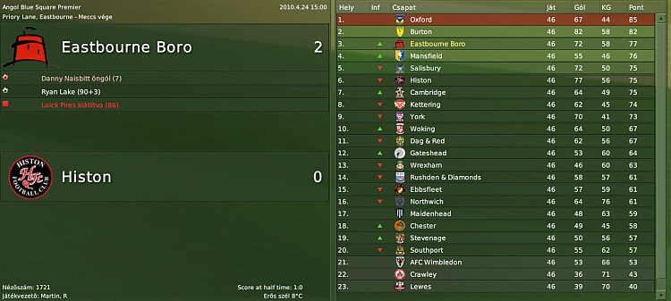 Zsombinho #51435 Úgy meg jött a kedvem a kiscsapatokhoz,hogy bár mindig jópár idényt lenyomok,de most szüneteltetem az Újpestes mentésemet és kezdtem egyet az angol hatodban.A Vauxhall csapatát választottam 22. helyre várnak eddig 4 bajnokiból 2 győzelem 2 vereség.Első évben célom a tisztes helytállás. -