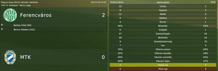 első meccsen 0-0 lett, sajna át kellett variálnom a taktikát, mert nincs jobbszélsőm(lesérült 8 hónapra), de otthon hoztuk a kötelezőt, igaz csak a hosszabbításban. Igy megvan az összes hazai trófea