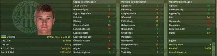 soványka bemutatkozás, apró mentség hogy BVSC kapusa 8.0-s rating-el lett a meccs embere
