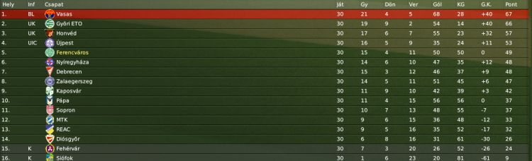 Így állunk most a bajnokság finishében, ha jó a hajrá, akár még fel is juthatunk :) (A média a 11. hely környékére várt... :D)