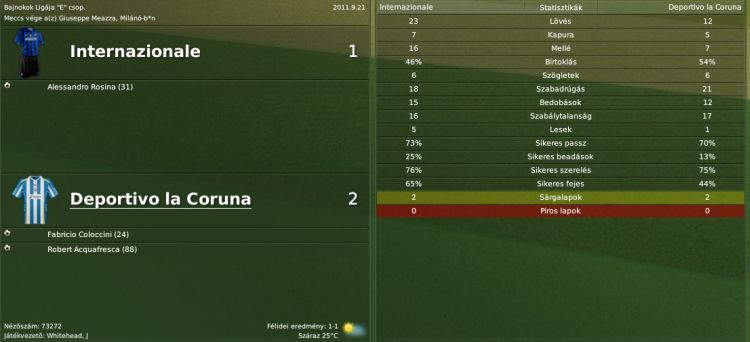 félidőben jött coloccini, biztam a fejesgoljában, bejött a 92. percben full attackon:)