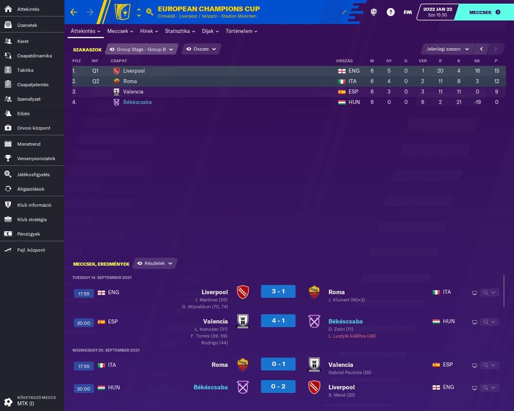 Ha kínkeservesen eljutok oda, hogy a csoportból néha tovább tudok jutni, akkor meg az oda-vissza meccsen kapom a picsázást. Aztán kiöregednek az utolsó nem generált játékosaim is, és kb. ott szoktam megunni. -