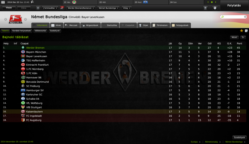 Itt befejezem ezt a mentést. Összejött egy bajnoki cím, egy német kupa, EL győzelem és egy európai szuperkupa. Mindenből egy kicsi. Még van egy VB a bosnyákokkal, azt talán befejezem, aztán újat kezdek, valahol a Premier Ligában. -