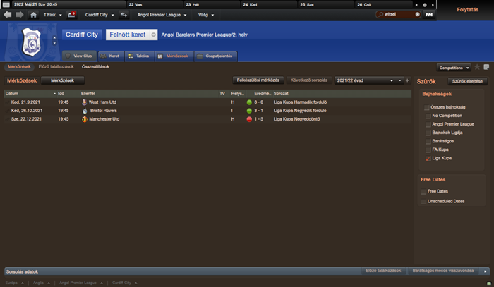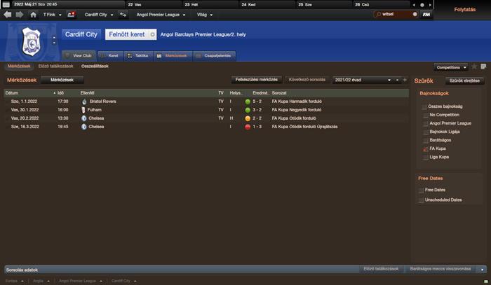 vége a negyedik és egyben utolsó szezonomnak a Cardiff élén. nem lesz hosszú beszámoló, sok örömteli dologról nem tudok beszámolni. kezdjük a bajnoksággal. leszögezem, nem érdemeltünk győzelmet, mivel egyszer sem voltam a szezon során első. viszont a vége roppant bosszantó lett. 4 körrel a vége előtt csupán 3 pontra volt szüksége a Citynek, hogy bebiztosítsa a győzelmét - nem tette meg. az utolsó körben már csak pár pont volt az előnyük, és a Villahoz mentek. én simán vertem a saját a meccsem, ők pedig természetesen elcsíptek egy pontot, így a tavalyi év után ismét ők nyerték a bajnokságot. tavaly 2 ponttal előztek meg, idén eggyel. csodás.