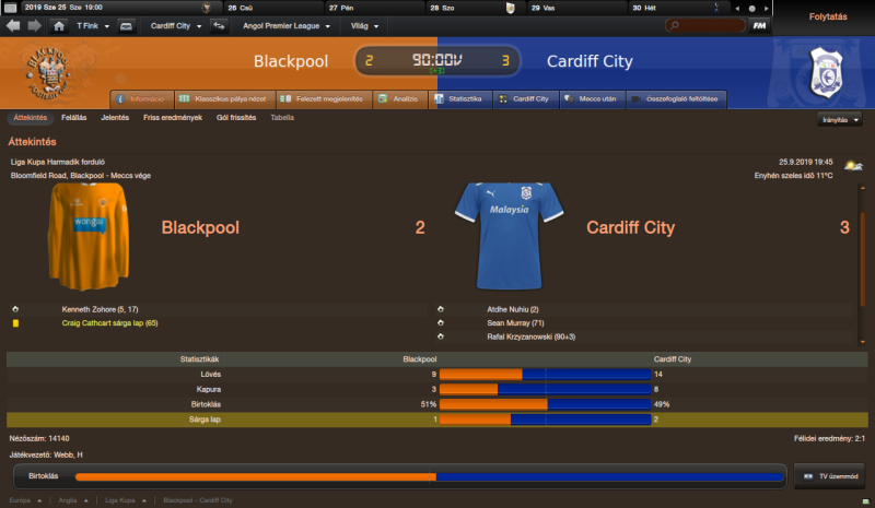 fordulatokban gazdag ligakupa mérkőzés: Blackpool-Cardiff -