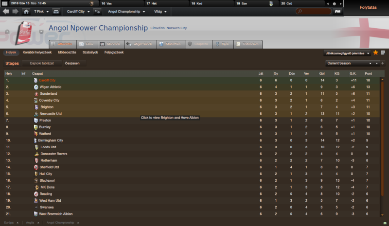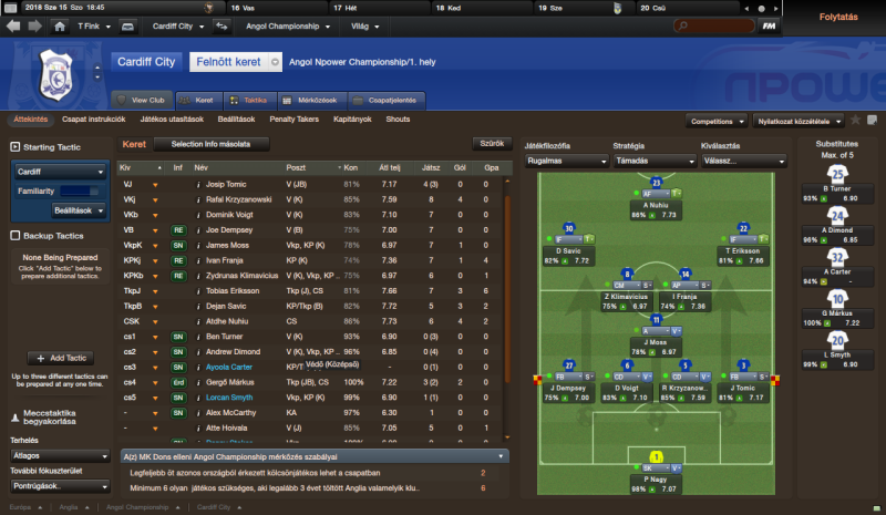 ahogy korábban írtam, a 2017/18 szezon végén lemondtam 3. csapatomnál (RM) is, és végre igazi kihívást kerestem. hosszabb keresgélés után végül a Cardiff City alkalmazottja lettem. szemeztem a Red Star 93-mal és a Leeds Utd-vel, de végül a walesi csapatot választottam. a harmadosztályt megnyerték, így újoncként vágtunk neki a szezonnak. a vezetőségi elvárások nem voltak túl magasak, viszont meglepetésre annál nagyobb átig.keretet kaptam (22m környékén). volt is nagy jövés-menés. egy apró tényt figyelmen kívül hagytam, mi szerint legalább 6 olyan játékos kell, aki 21 éves kora előtt 3 évet Angliában töltött. na ezek után jöhetett a nagy kapkodás, hogy feltöltsem/kiegészítsem a keretet ilyen srácokkal. ennek néhány, amúgy egészen kiváló játékos látta a kárát. figyelmetlen voltam.