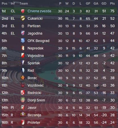 Nagyon jó, kár, hogy 2 ponton múlt csak a BL. Ami még szembetűnő, hogy az első 3 gólkülönbsége +60-as, aztán óriási szakadék.