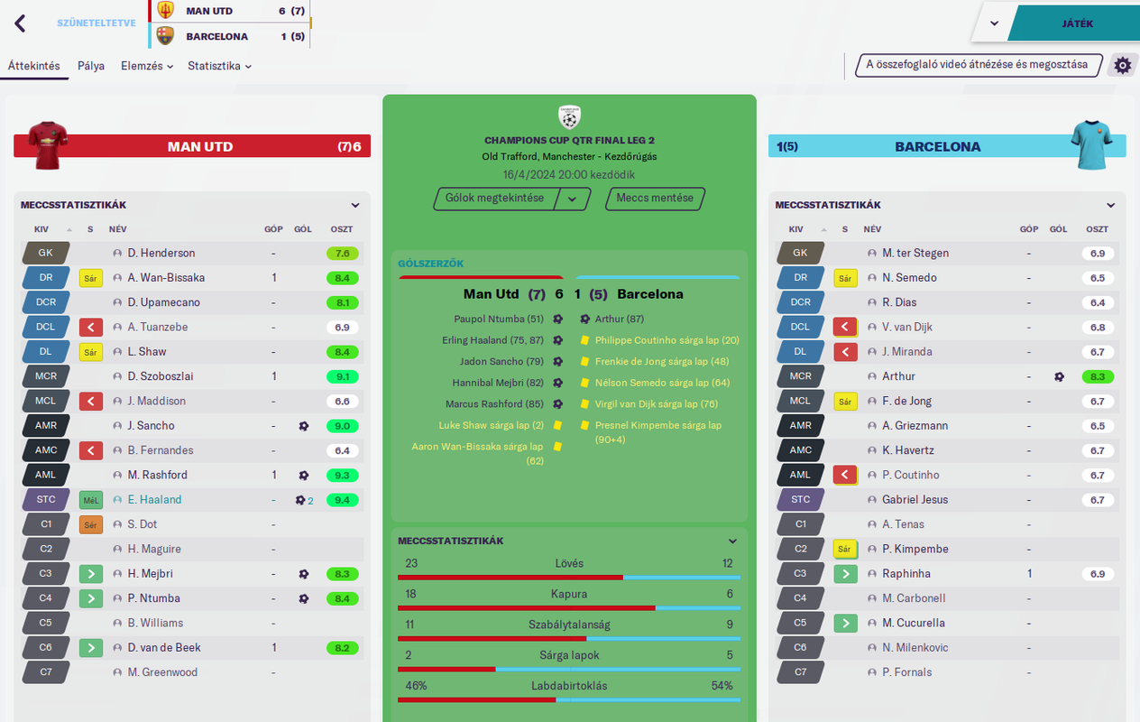 Meg az előre lezongorázott eredmény! Itt konkrétan a félidőben felgyújtottam az öltözőt! 3-at cseréltem és 6-an támadtak fullra: