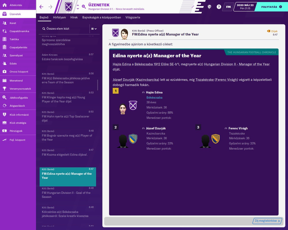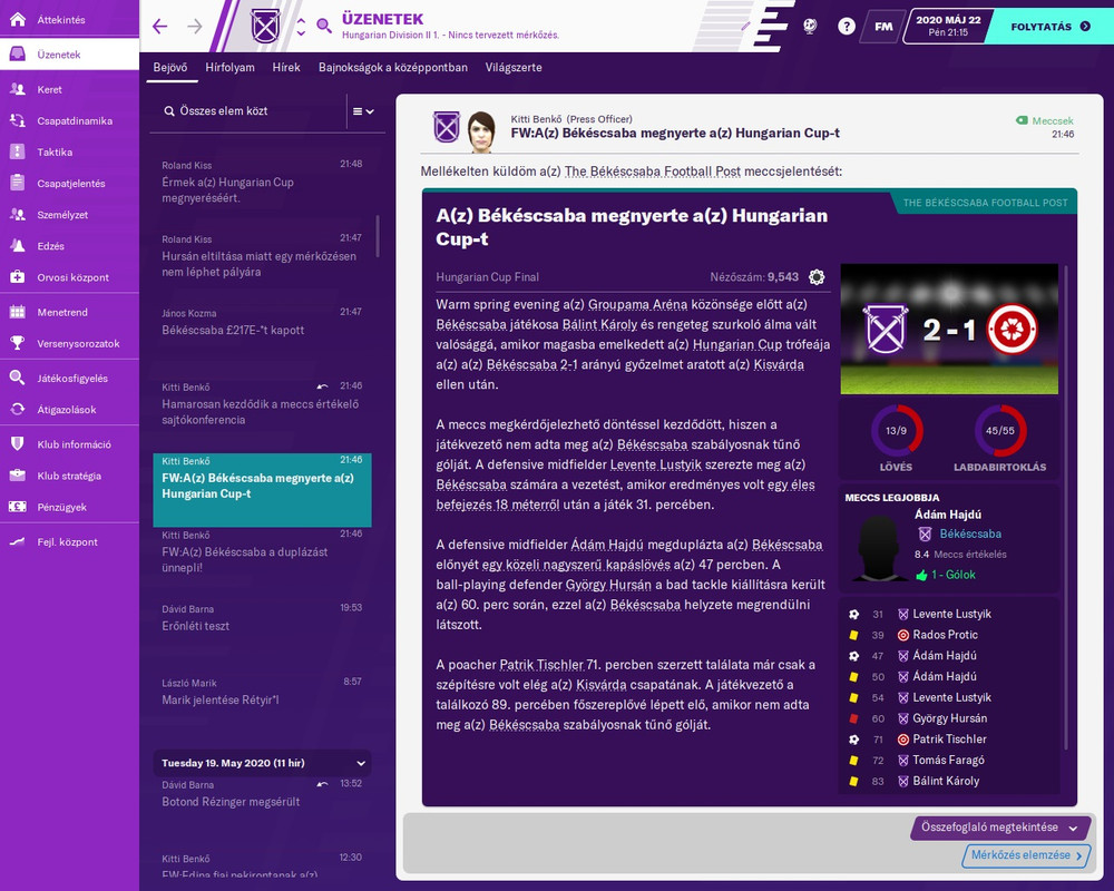 Meccsmotor: a megjelenített helyzet számának és milyenségének semmi kőze a játékhoz. Az FM már akkor tudja a végeredményt, amikor elkezded nézni a meccset. Én ezért se nézem, inkább kommentár. A taktika viszont nagyon fontos, ahogy a háttérstáb is. RÉMLIK???????