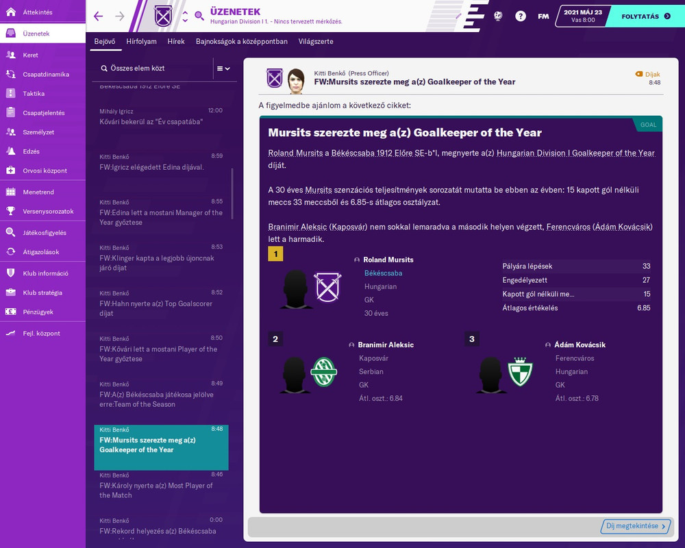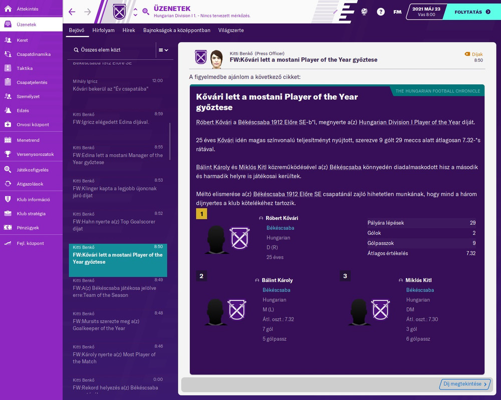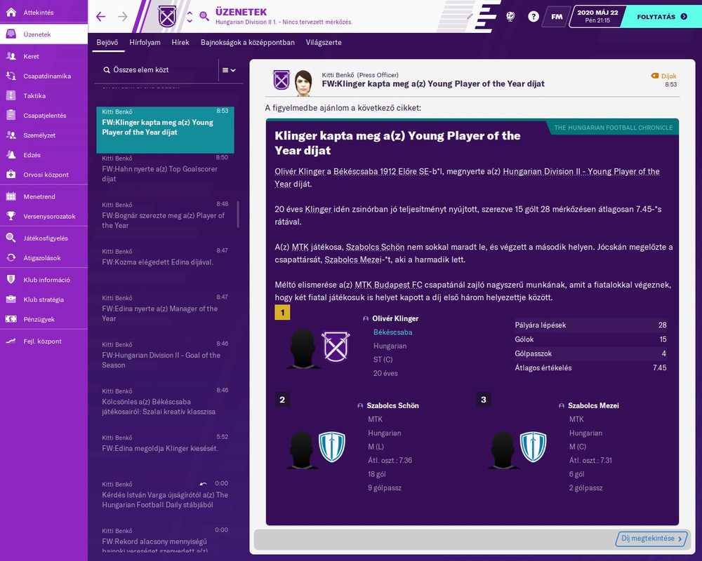 Ezt a játékot ne hasonlitsd a Fifa hungary superpatchéhez, mert az nyomába se é az FM-nek. Minden a valóságnak megfelelöen történik.