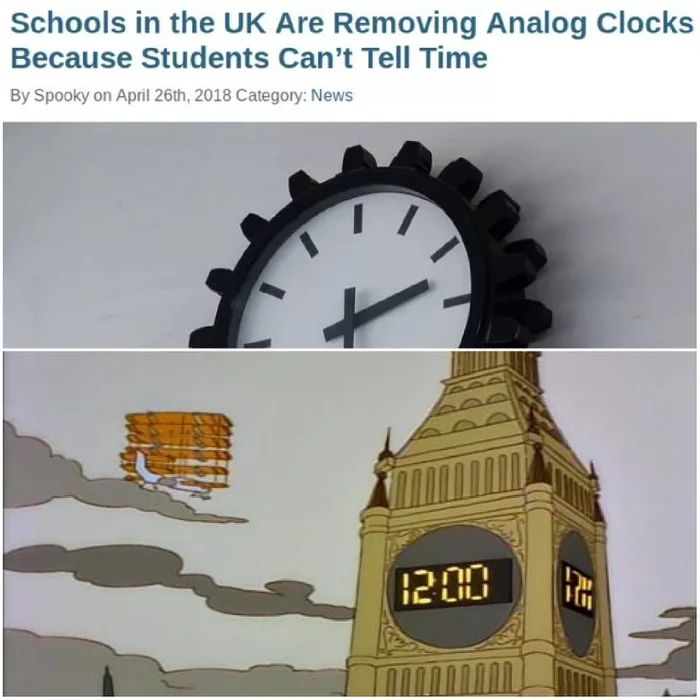 Egy osztott fotón felül egy analóg óra van, alul meg egy toronyóra egy tornyon, ami digitális.
