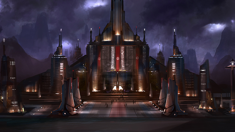 Ahogy a köztársaság életében is, ezt mutatják a következő képsorok: a lenyugvó nap fényében tündöklő Jedi Templomról átváltunk 0:28-nál egy sötét hangulatú éjszakai képre egy nem tudom milyen épületről, aminek elég jelentősen birodalom-hangulata van egyrészt a jelentős katonai jelenléttől, másrészt a színek-fények jellegétől (borult ég, kékes-sötét alaptónus, piros fénypamacsokkal). Az SWTOR nevű játékban meghökkentően hasonló Dromund Kaas, a birodalmi főváros (kép pl. itt). Először arra gondoltam, hogy az is szerepel az egyik epizódban (nagy durranás is lenne), de később, mintha Ahsoka is látható lenne itt, az meg elég furcsa lenne szvsz. Így arra jutottam, hogy inkább egy coruscanti katonai épület lehet (talán pont a börtön).