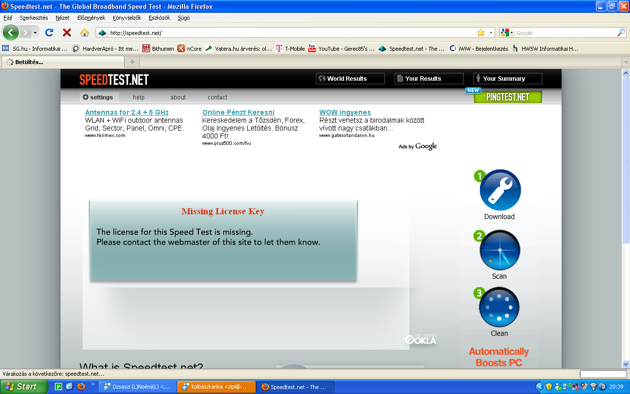 De közben semmi 1éb NET. Ergo semmi net rádió, böngészés, ... Ja, amikor beszéltem üszissel azt mondta, hogy nézzük meg az index.hu-t. Közben 1,2,3,4,5 mp eltelik. Nagyjából kész. 9 mp alatt csúszott a csík végig a FF-ban. Üszis azt mondja, hogy ez Okés ui. relatíve nagy az oldal. Mondom az lehet, de az érem másik oldalán meg az van, hogy mennyi lenne ha közben menne egy net rádió, azt lehalkítom mert megnézek egy Jútyúb videót és közben elindítok egy Speedtest-et is. Szerintem ne tartsuk fel egymást túl sokáig.
