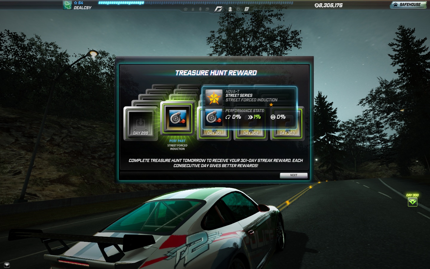 Az nem semmi. Én 21 napnál vagyok, a 19. naptól számítva kaptam egy 4-9-17 rugót, egy 3 csillagos nitrous duration skillt és ma meglátjuk még mit :-) -