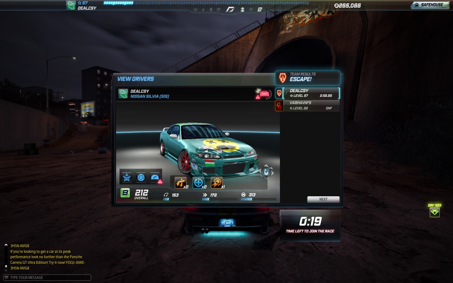 Dealcsy #55688 Tudom, hogy a team escape nem verseny, meg hogy ott nem lehet valós erőviszonyokat mérni, de az nekem is röhej, hogy egy totálkáros silvia elver egy carrera gt-t, holott azért a sok rendőrtől eltekintve ég és föld a különbség a két kocsi tulajdonságai között. Nem beszélve arról, hogy a carrera DNF-et kapott a cél előtt kb.5-10 méterre. Én meg épphogy beértem. Amúgy meg mindenki megijed ettől a kocsimtól, pedig totálkárosan furikázok vele mostanság.