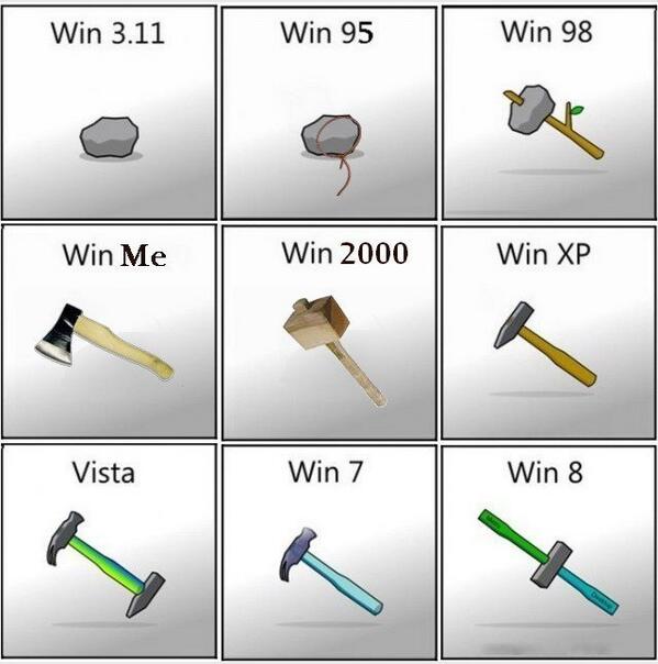 Zero 7th #29859 A WinME-t nem értem. Vagy az a poén lényege, hogy jó eszköz az, csak nem arra, amire kéne neki (kalapácsnak kéne lennie, az meg egy fasza balta)? -