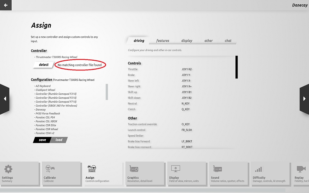 Itt valami árulás van mert így sem jó. Eleve amikor kiválasztom manuálisan és betöltöm a T300 profilt a menüben valamiért alapból nem definiál a tengelyekhez kiosztást, bármi már töltök be, pl. T500-at ahhoz már igen de hiába forgatom a kormányt, nyomkodom a pedált nem érzékel semmit. -