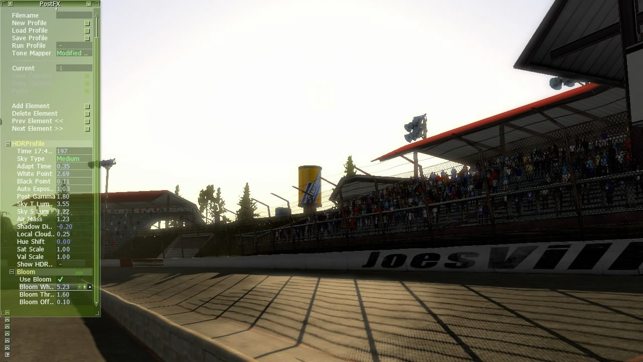 Az itt talalhato palettak nagyresze csak tesztelesre van, vegignezni a beallitasokat, amelyek dinamikusan kepzodnek a programban (napszakok, idojaras, kulonfele aszfalt allapotok stb.)