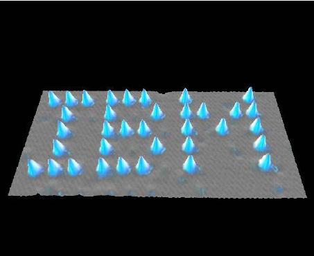 Valoszinuleg a nikkel atomokra gondolsz, es ha jobban megnezed a kepet, akkor a kis szurkes dombok a nikkel femfelulet atomjainak a tetejei. Egyebkent meg a kep pont azt mutatja amirol beszeltek, ezt az ibm logot ugyanis stm-el raktak ossze, ami viszont felapritotta a szerves anyagokat. -