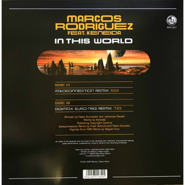 Itt pedig megvásárolhatjátok : MARCOS RODRIGUEZ FEAT. KENEIDA - IN THIS WORLD "REMIXES" (BYN 027) -