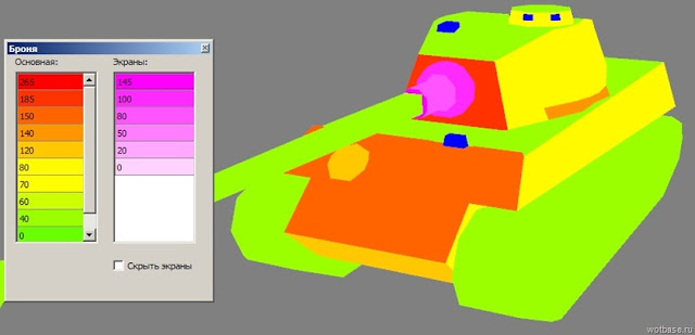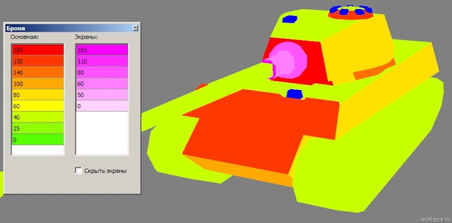 az adott páncélvastagsághoz tartozó színek is megváltoztak