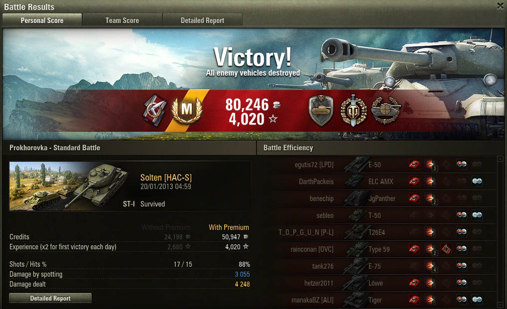 Achievements: : Steel Wall, Top Gun, Sniper, Reaper, Mastery Badge: "Ace Tanker"