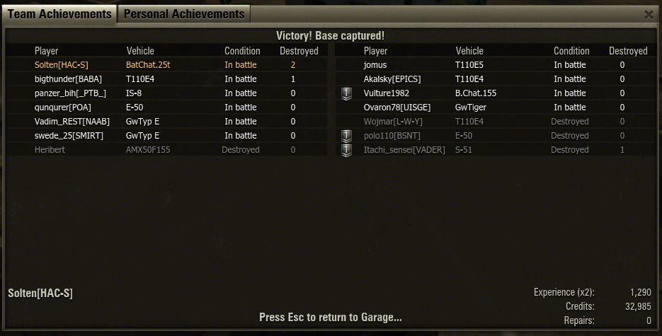 'T110E5' purchased successfully. You have spent credits: 6 100 000.