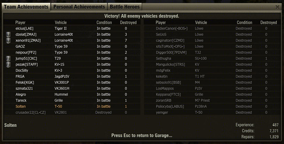 fodus #106038 Ismét nagyszerűen indul a nap. 20 csatából 20 vereség. Még akkor sem sikerült nyerni az áldott csapatomnak, amikor b2-vel kiirtottam az ellen 6 tankját, egy hetzerrel közösen. Másik 3-at majdnem 10% ra sebeztünk.....****************** -