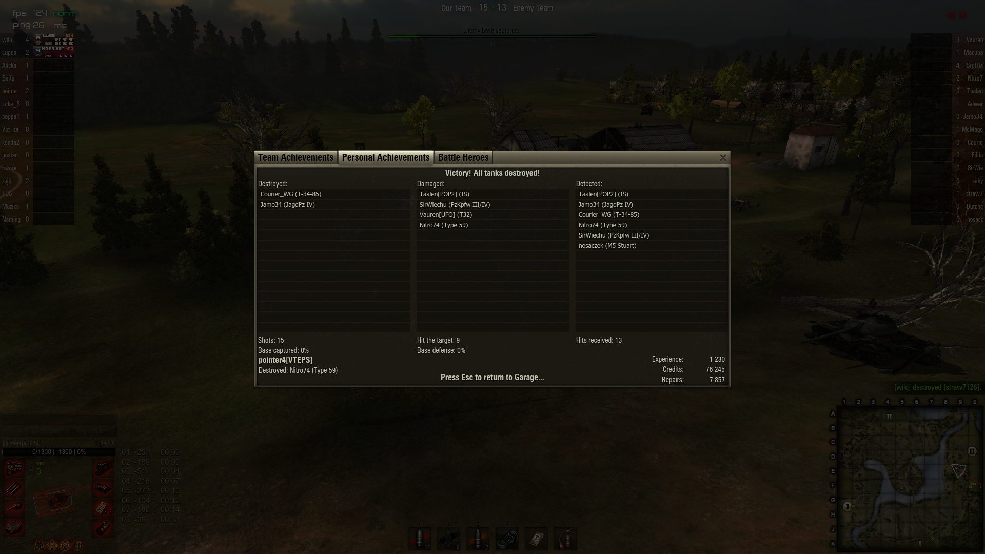 Majd mégiscsak lett némi akció, amikor pár gyorsabb arty itt is ott is scoutolt némi célpontot. Tizenhárom eltel perc után a saját artyjaink kilőttek minket, mivel nem volt célpont és scoutolni meg senki sem akart. Na ezért kellene a korlátozás. -