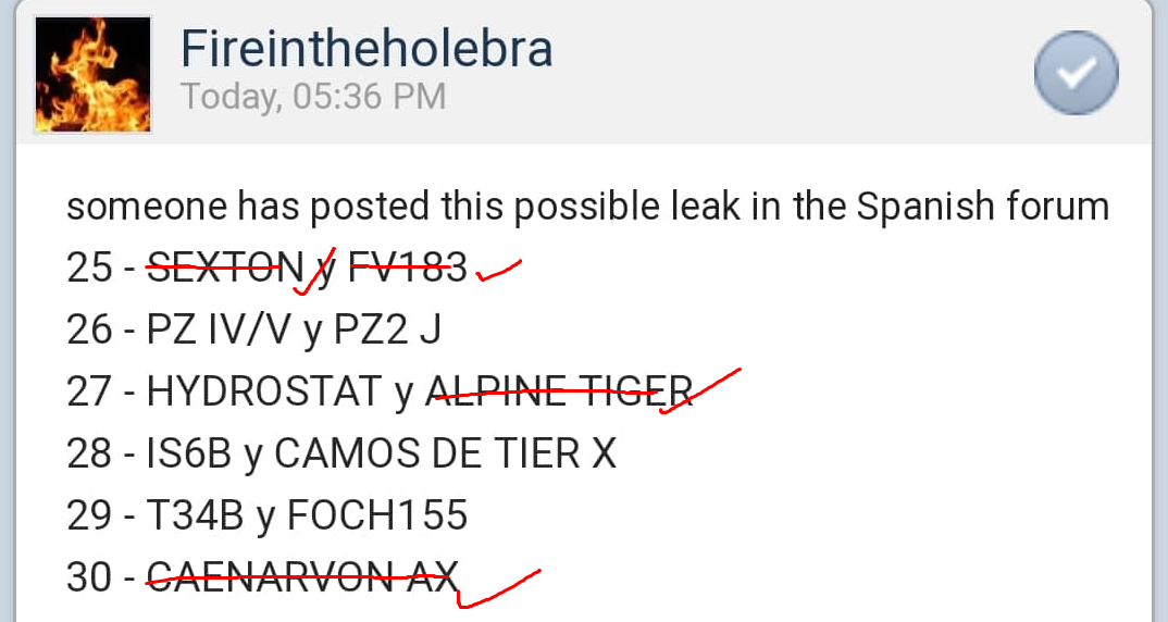 Pares #409549 Remélem a kiszivárgott lista kamu és/vagy más tankokat fognak betenni, mert egyik sem mozgatja meg a fantáziám. T8 alatti tier alapból nem izgat. A M41-90GF-t megvettem volna 8 milláért, de arról lemaradtam... Type 59-et már volt szerencsém megnyerni, Caern AX, T34B, Foch, IS-6 közül meg egyedül a Foch az, amit talán megvennék ezek közül (az ágyúja miatt), de csakis kreditért... -