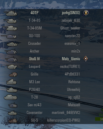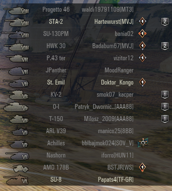Malarki #408622 Az előbb voltam egy olyan csatában ahol 5 T10 tank volt oldalanként, abból 3 arty.. Olyan is volt hogy az egyik oldalon 3 T9 heavy volt, a másikon 1. T7 tankkokkal eddig elég gyakran voltam top, ma hat meccsből hatszor T9. Csak pár példa. Persze lehet hogy csak engem szeret az mm ma, de akkor is. -