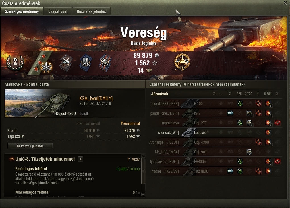 nemtudommivan #408557 Es pont erre. Tegnap mentem vele egy 6900 sebzo 7 killes kort es csak 1. adott. Mi kell a tank aszhoz? Elso sorban toltam vegig csak 2 tavolra adott loves volt a vegen. -