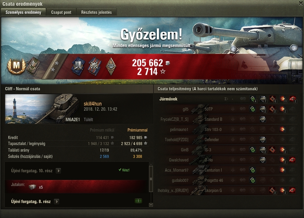Szerintem ez a tank sokkal jobb bármelyik tier8 fenevadnál. (Defender, IS-3A, stb) Nem lát tier10-et, álom az egész.