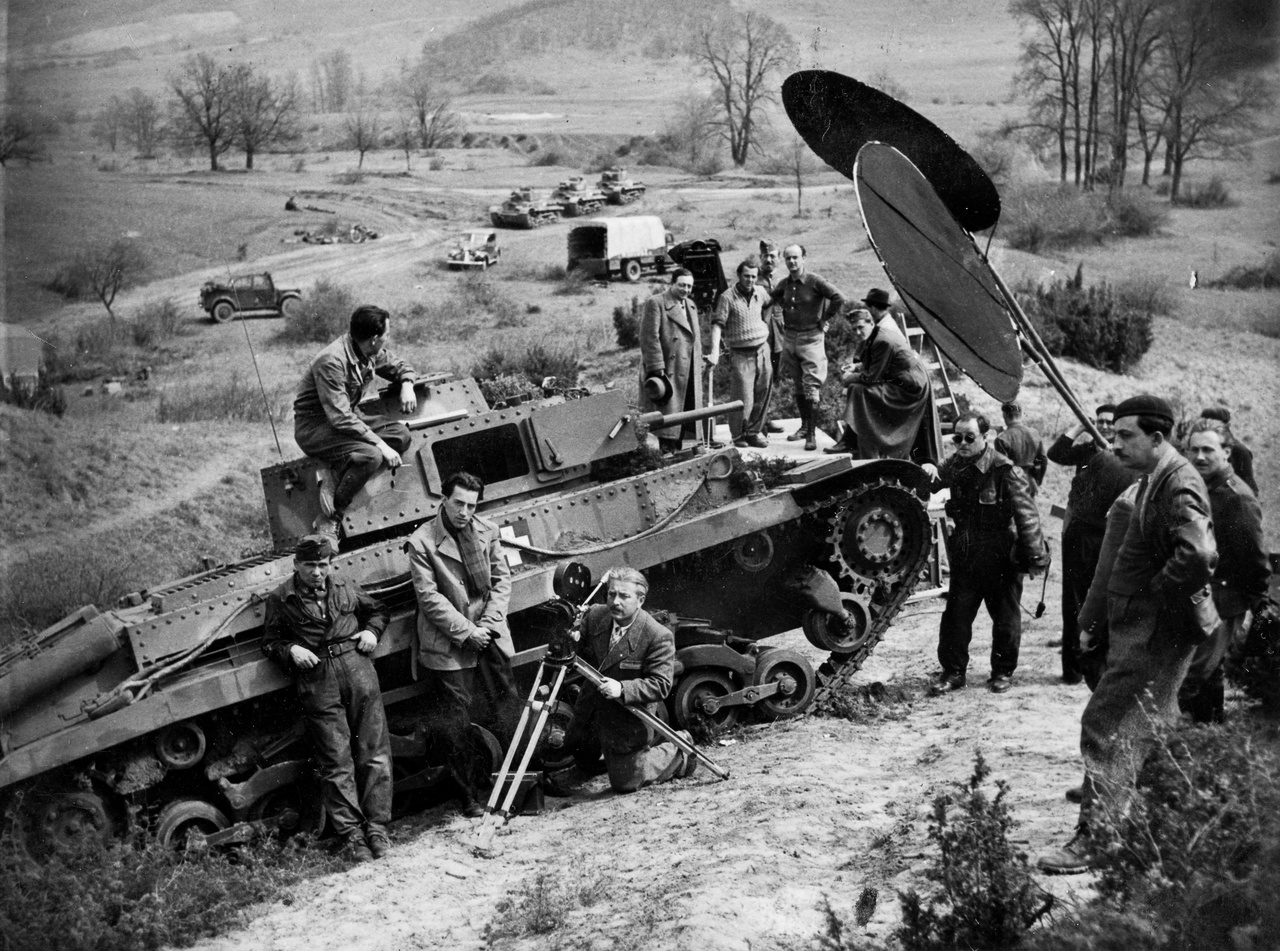 Egy elveszett film werkfotója 1943-ból. Az Anyámasszony katonája c. háborús vígjáték a fennmaradt forgatókönyv alapján ítélve jó párbeszédekkel teleírt, színvonalas vígjáték lehetett. Külső jeleneteit a honvédség közreműködésével valahol a budai hegyekben vehették fel, a filmgyárból csak a kamerákat, a hangosztályt és két "négert", azaz fénytakaró maszkot mozgósítottak.