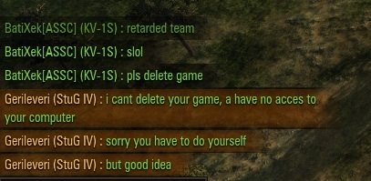 András77 #381755 Ma egy alap játékos, 3x tier10 tankkal, nem tudta, hogy assault módban a védekező csapat nyer, ha lejár az idő. Könyörögtünk neki, hogy bújjon el. 1 számjegyű hp-ja volt, de csak 15 másodperc a játékból. Simán lehozhatta volna, de előrement. Csata után mondta, hogy azért, mert nem élte volna túl (kb 1 perc volt hátra a foglalásból, szerintem arra gondolt, hogy 1 perc alatt megtalálják, de a játékból csak 15 másodperc volt hátra) és egyébként is az ellenfél nyert volna, mert foglalt. Mi van? Egyrészt nem tudja, hogy assault-ban a védekező csapat nyer. Másrészt nem tudja, hogy az ellenfélnek teljesen be kell foglalnia a győzelemhez, amire már nem volt idejük.