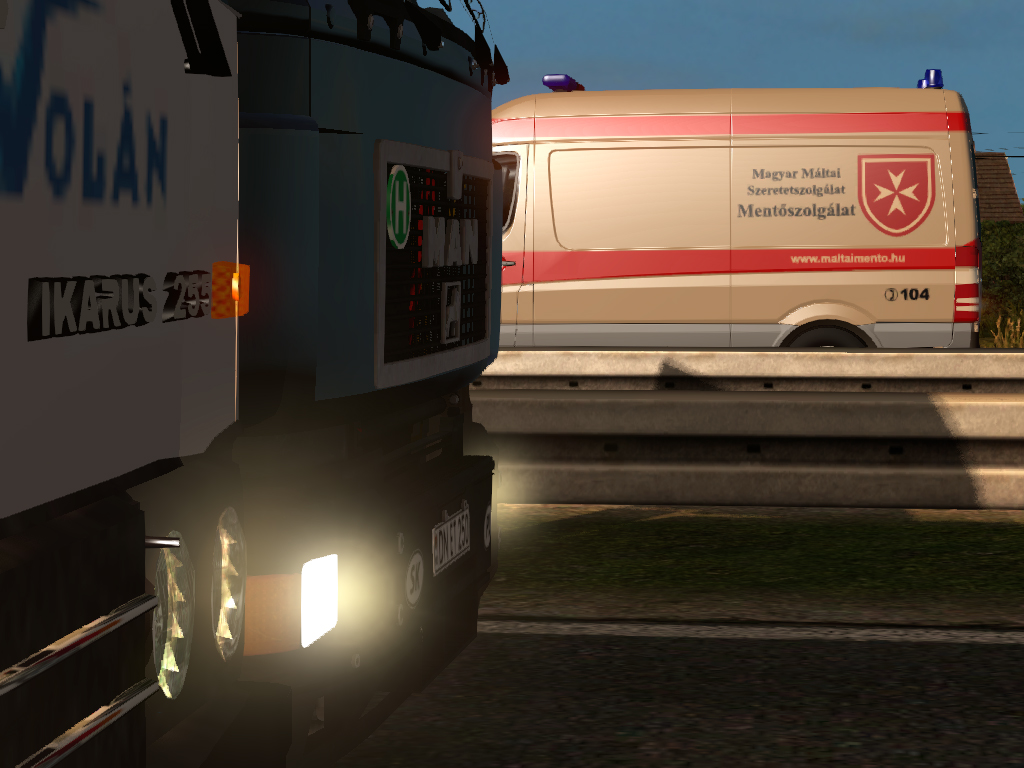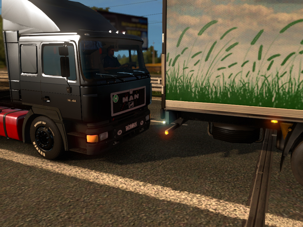 A pótkocsi féket szoktátok használni?, igazából a rendes féken kívül( bekapcsol légfék rendszer szimulálás mellet) mást nem nagyon szoktam, nem kellet még használnom, meg álltam mindenütt, sokszor még túlságosan oda is kell figyelni hogy ne álljak meg túl hamar pirosra váltáskor, mikor beleállok a fékbe(billel nehezebb adagolni :)).