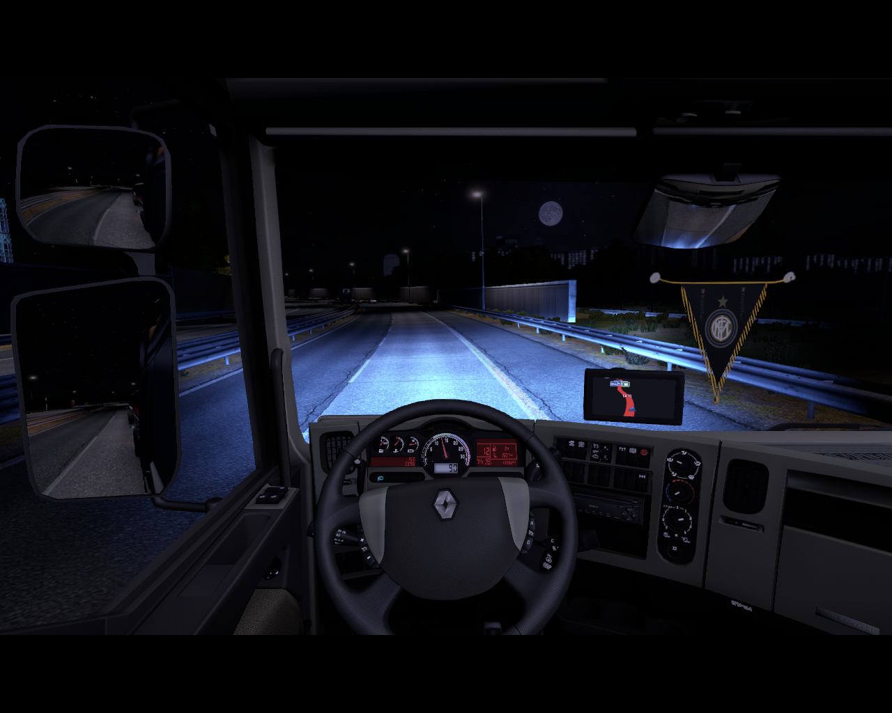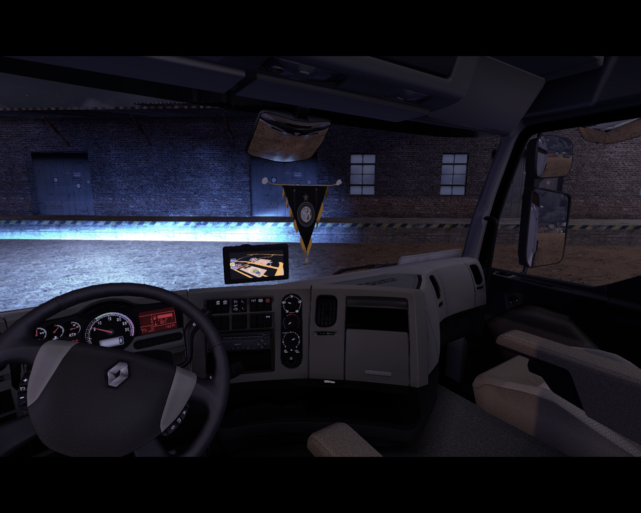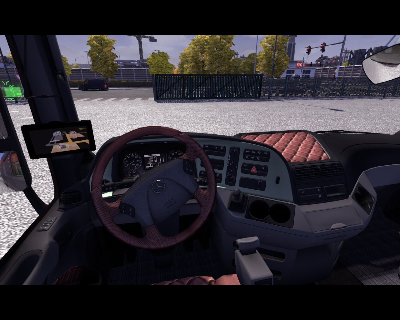 A Man kamion-ba a gyári belső fülke nézet , nagyon közelre van állitva a szélvédőhöz , és így nem látszik a
