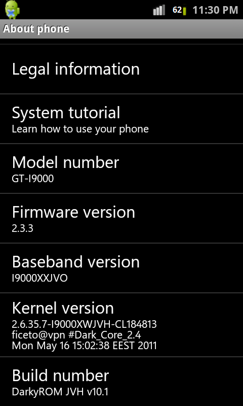 a baseband jvo, maga a rom jvh, lasd: "flashed with DarkyROM JVH v10.1 RE"