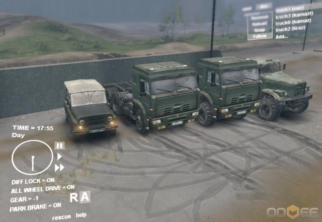 Nagyon király let az új demo csak egy bajom van vele, ha pl elakad az UAZ, nem tudom kitolni a Mazzal, a nem aktiv jármű kerekeit blokkolja, mintha földöz ragasztották volna...:/ -