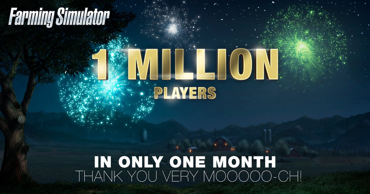 We're proud to announce that more than one million players harvest Farming Simulator 17's fields already! Thx for your incredible support!