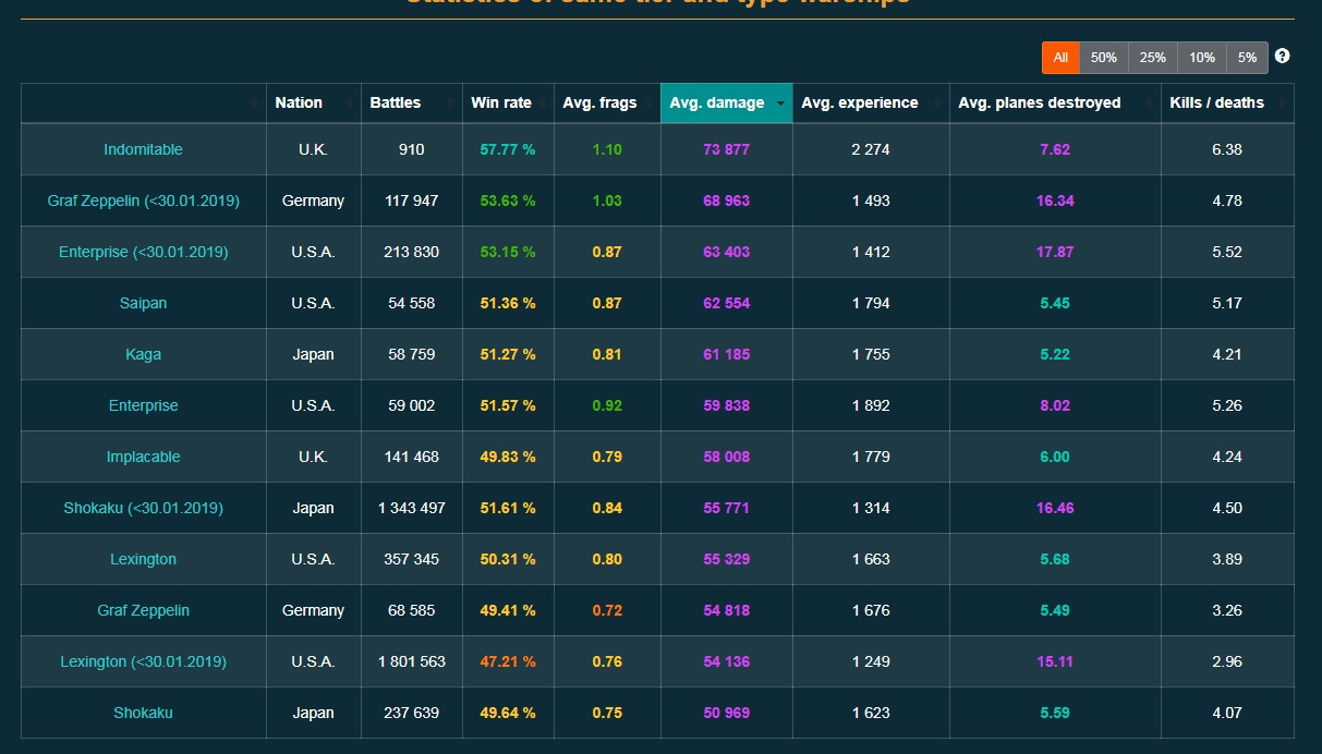Az a rész azért nem működik, hogy az adott flotillával együtt haladjon a hordozó és így támogassa őket légvédelemmel, mert ahogy spottolódik a hatalmas Concealment miatt, máris elsődleges célpont lesz. Még akkor is ha két szinttel alacsonyabb, mint a többi hajó körülötte. Így értelmes CV játékos nem fog támogatást nyújtva, a támadó flottával haladni.
