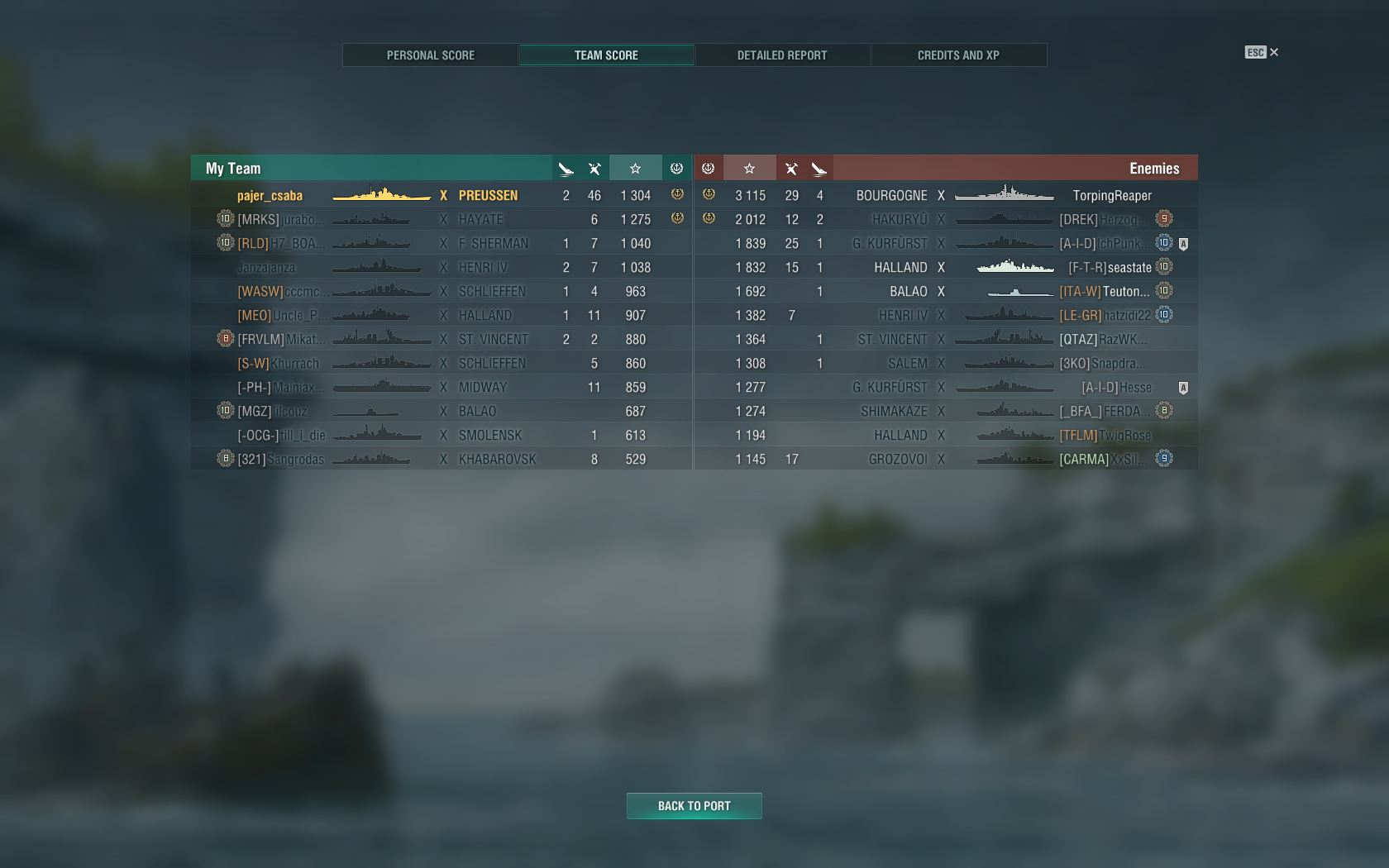 pajer_csaba #20708 Tier VI Mackensen, Strait map, kirak teljesen egyedül délre, persze 2 CV mindkét oldalon a csapat meg a szigetekkel csókolózik, megint. Egyetlen torpedó-rajból 4(!) támadás, kifordulni már egy fél éve nem lehet semmit, HP 2/3 bye-bye, 11 km-ről semmit nem lehet eltalálni hála RNG-god, tök mindegy hova célzol, végül 2 lelőtt gép teljesítménnyel szednek ki a csata 3.(!) percében. Köszi, WG, megérte ma is felkelni. -