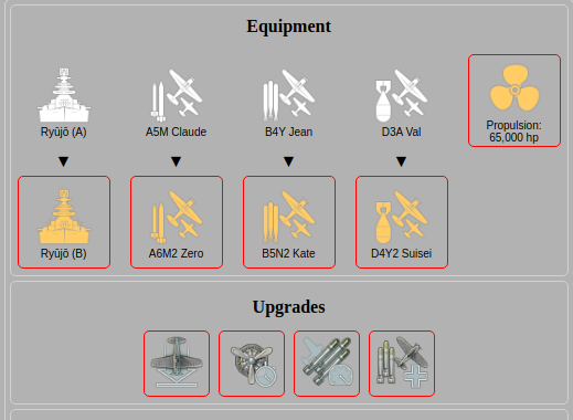 A japán hordozók, különösen a T6 nagyon érzékenyek a jó beállításokra. Az is fontos, hogy aránylag sok pontos kapitány kerüljön bele. Ha jól számolom, 12 pont kell hozzá minimum. A harmadik sorból a jelölt három képesség létszükséglet.