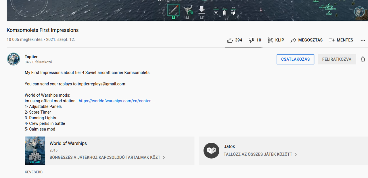 Ha megnyitod a videót külön ablakban, látszik a megjegyzés résznél, hogy milyen MOD bellításokat használ.