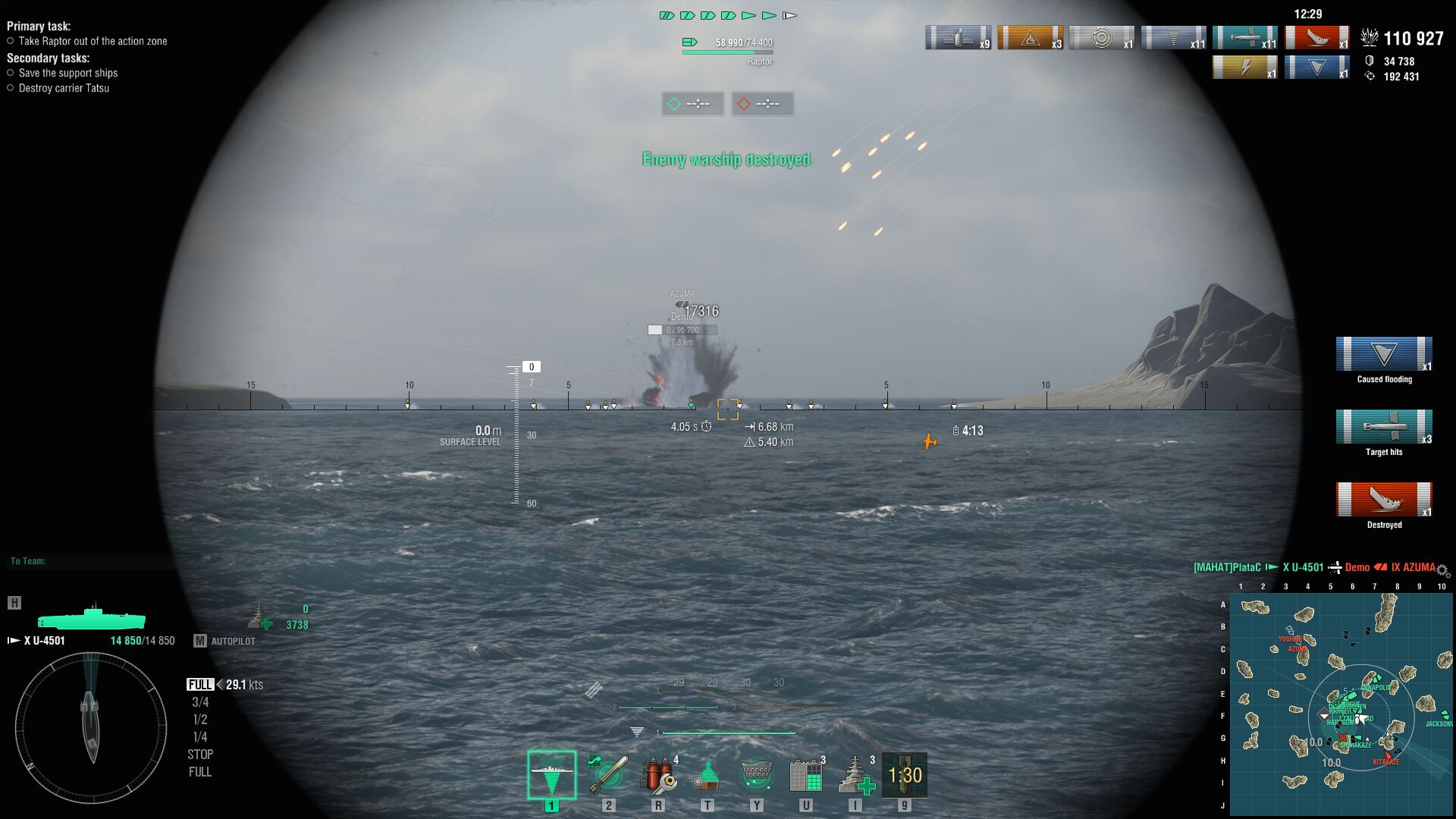 Középütt kezdtem egyedül,nem jött arra a kutya sem,így elindultam a pálya szélére BB felé,de csak úgy poénból elindítottam nyolc torpedót egyenként összevissza.