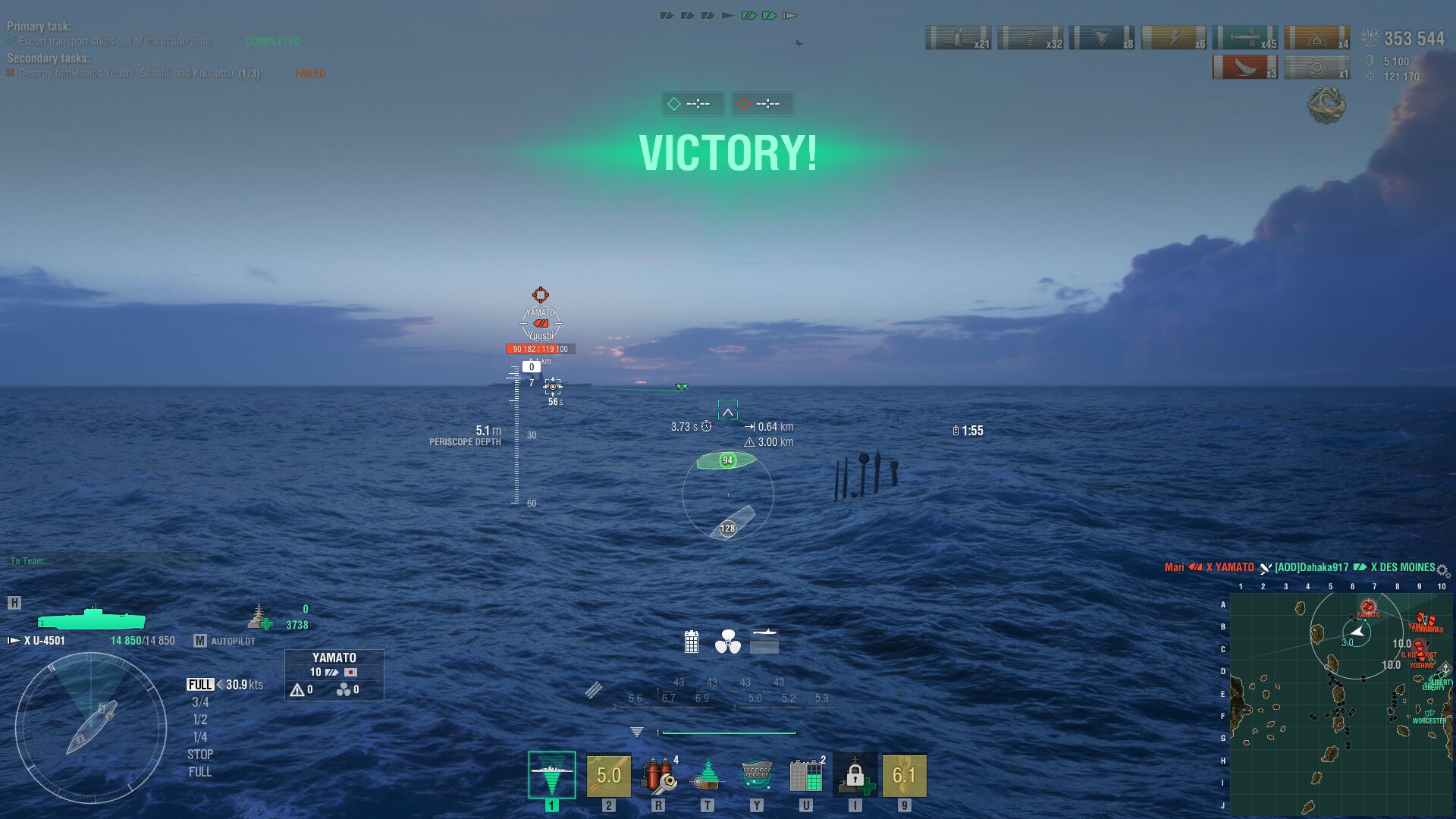 Már épp elértem volna a Bb csapattársakhoz mikor láttam valami foglalja a középső bázist,majd a torpedók betalálnak és meghal a cruiser ami foglalt. :D