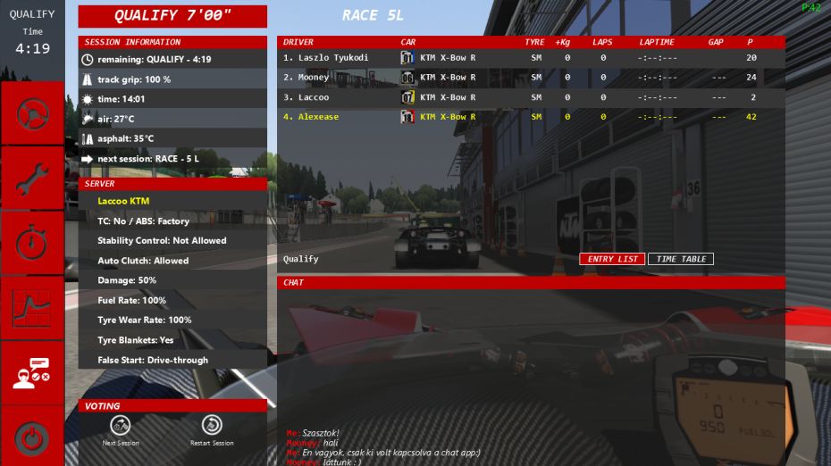 A nyílt gyakorló szerver 0-24 elérhető, setup a futam topikjában!